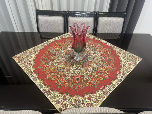 رومیزی مربع قلمکار اصفهان 100*100 کرم قرمز مدل 5۵۰۰٬۰۰۰ 20%