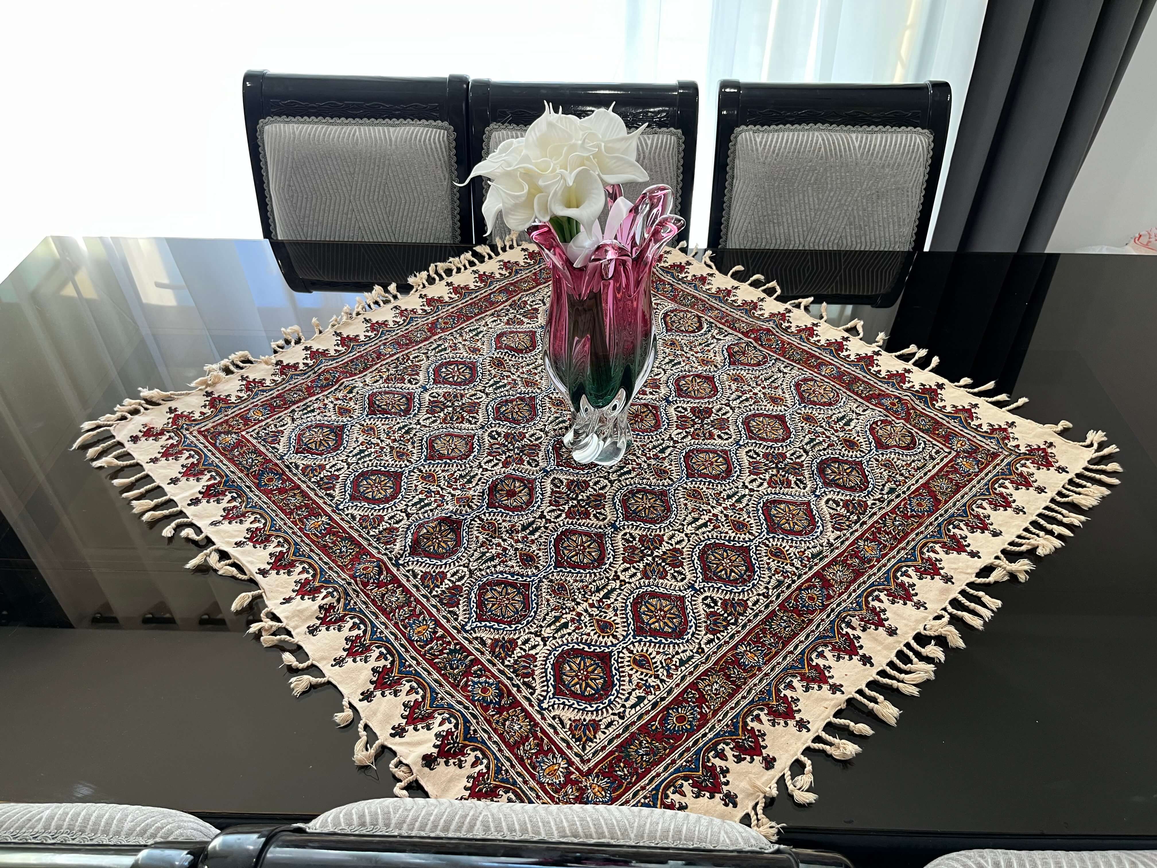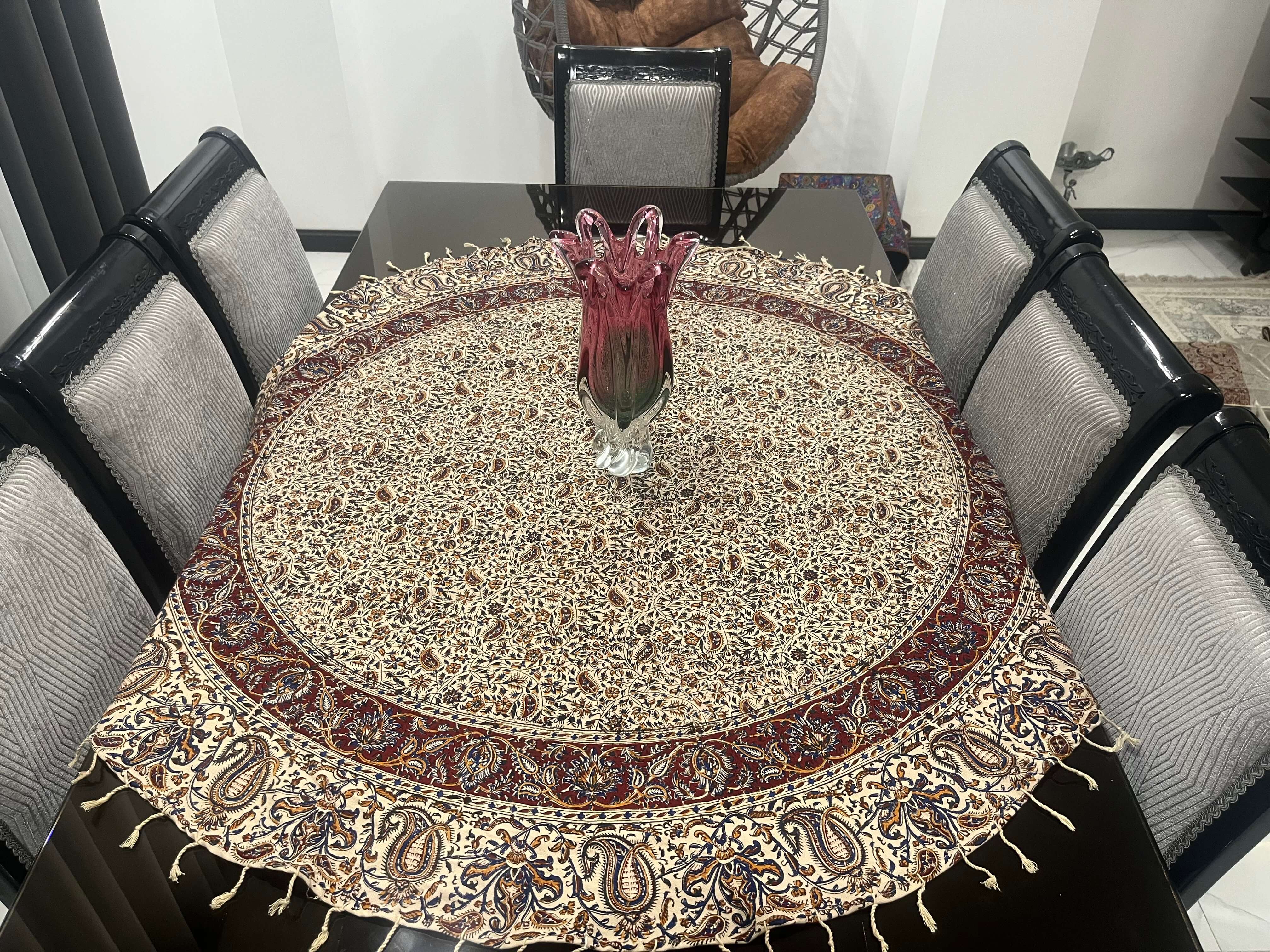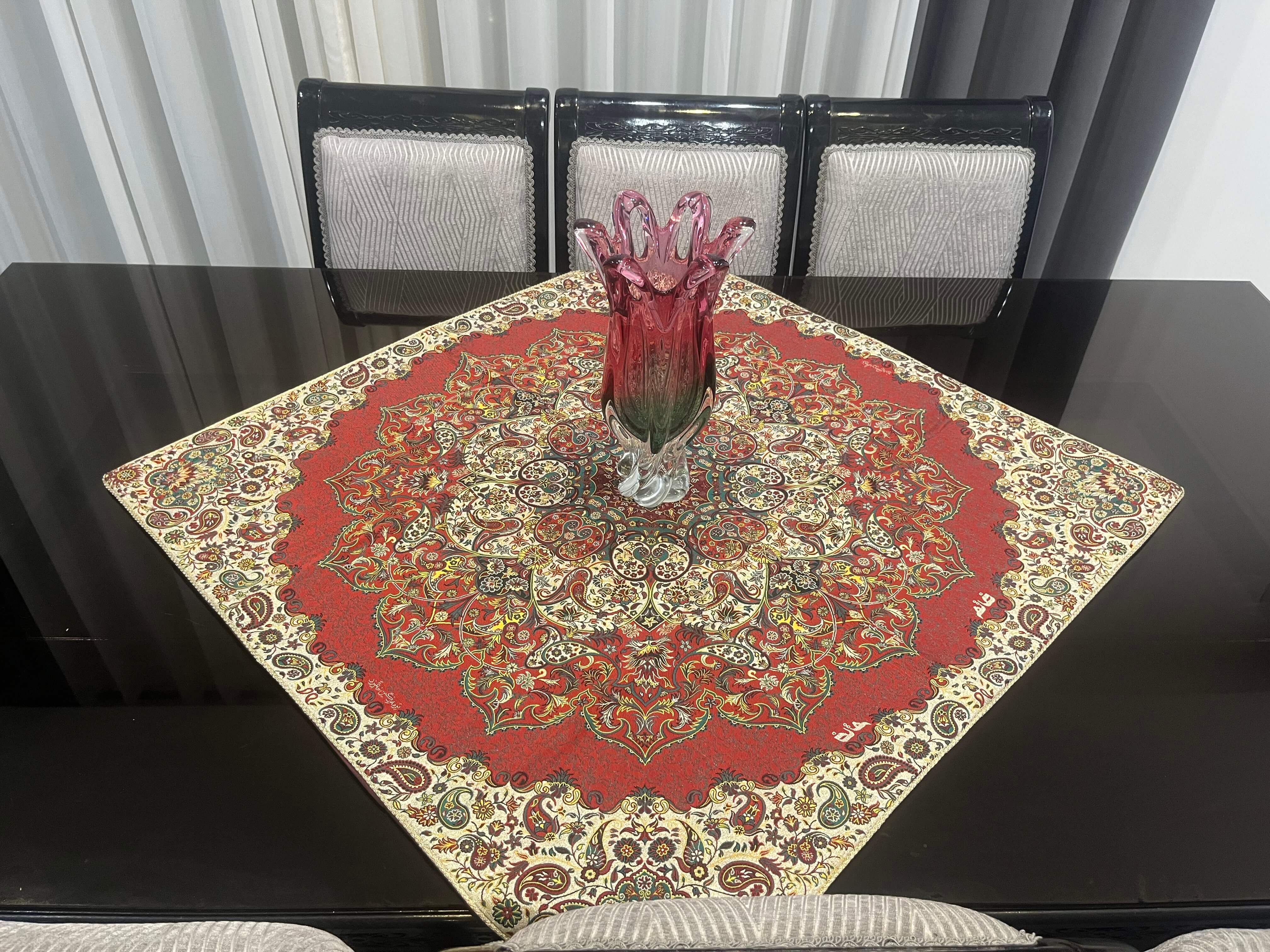 رومیزی مربع قلمکار اصفهان 100*100 کرم قرمز مدل 5۵۰۰٬۰۰۰ 20%
