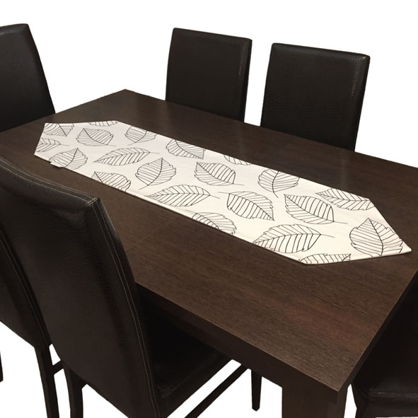 روی میز چوبی ساده، رانر طرحدار خیلی خوب میدرخشه