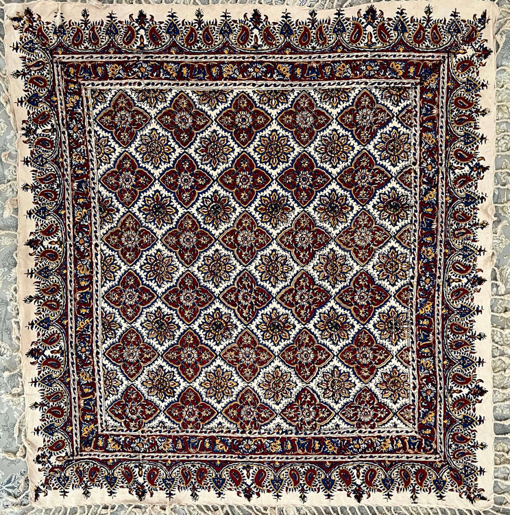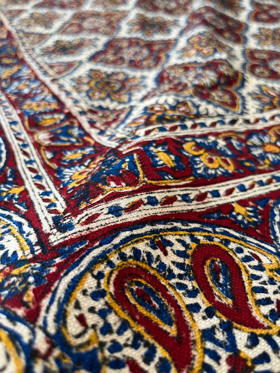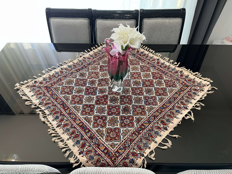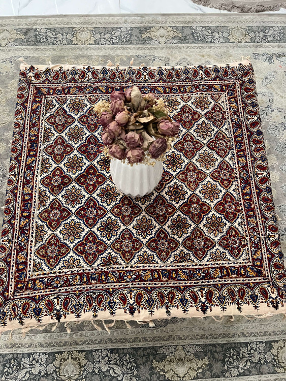 رومیزی مربع قلمکار اصفهان 100*100 کرم قرمز مدل 3