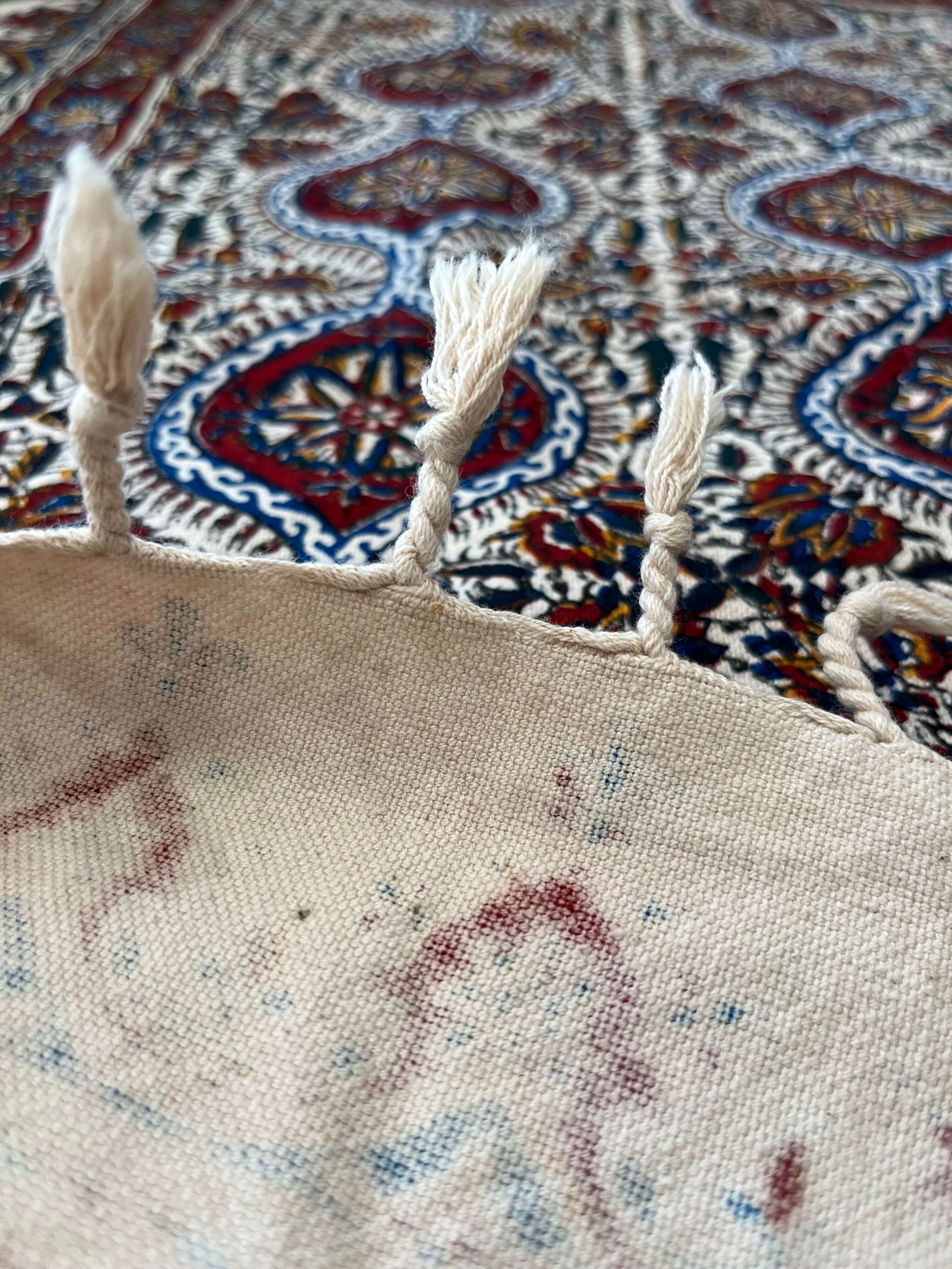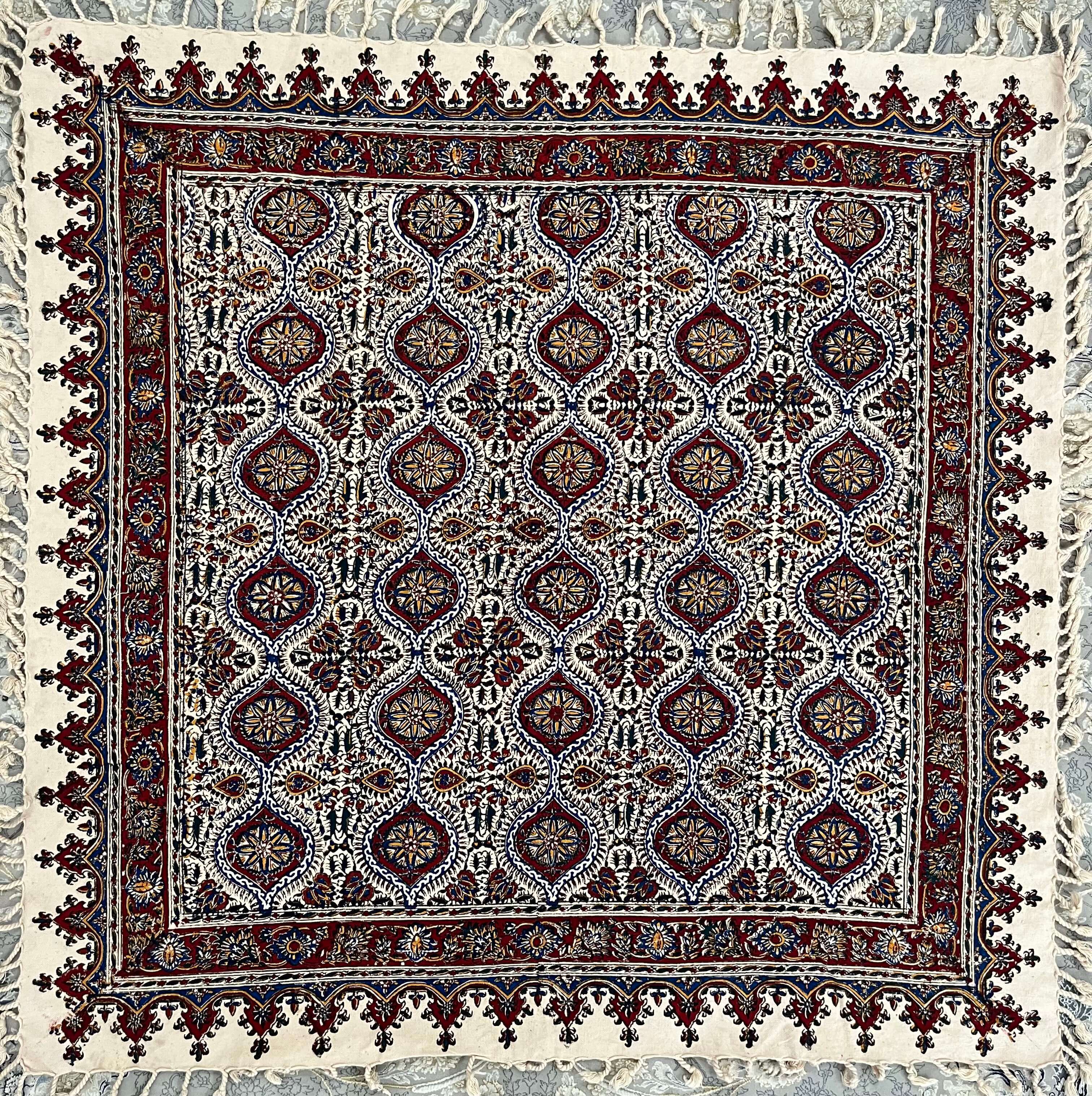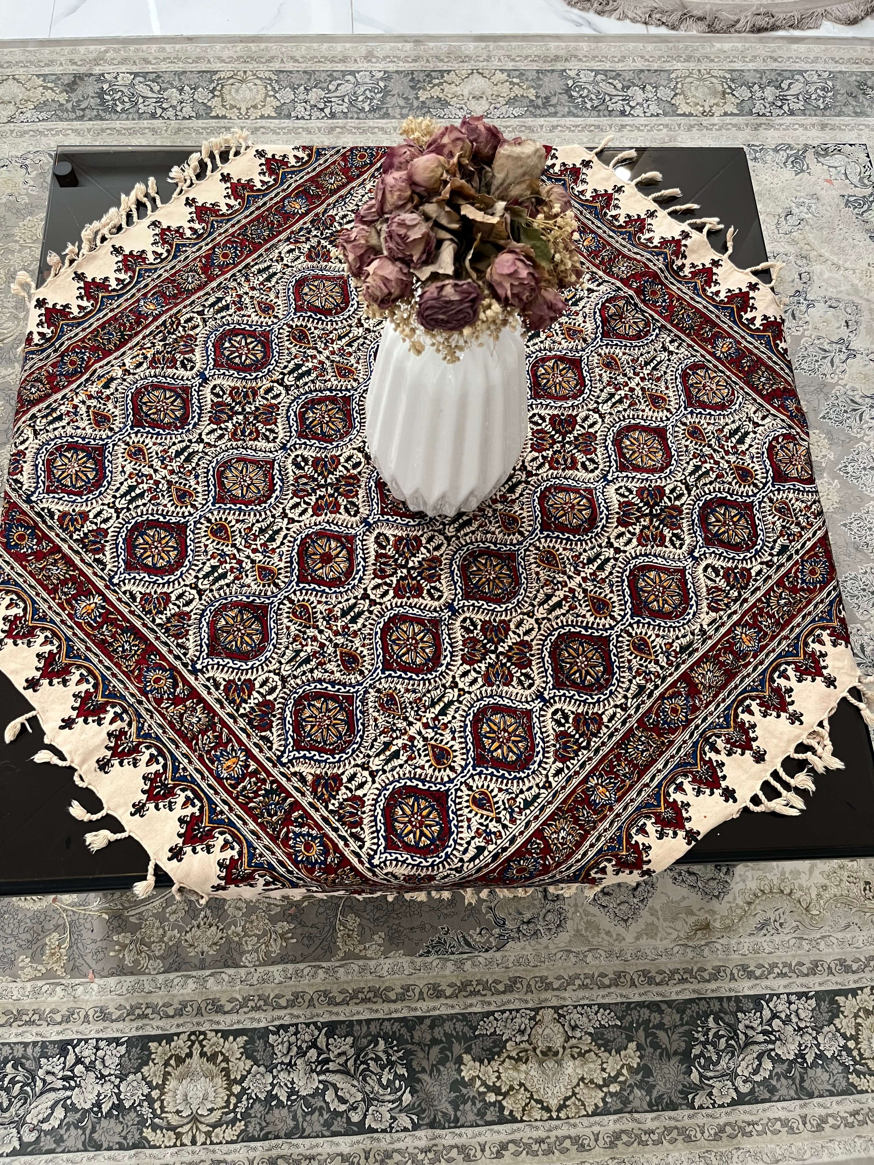 رومیزی مربع قلمکار اصفهان 100*100 کرم قرمز مدل 5