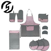 اجزاء : دمکنی 3تکه، 1 جفت دستگیره، 1 جفت دستکش فر، ظرف خشک کن، پیشبند، 1 جفت چدن گیر