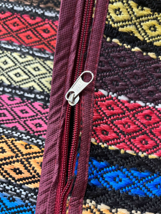 ساک زیپدار جاجیمی آرلیا مخصوص لباس با دو دستگیره و زیپ مقاوم انتخابی عالی برای نگهداری لباسها در کمد، زیر تخت، مسافرت و جهیزیه است؛ هم محکم، هم شیک و هم کاملاً کاربردی 🎒