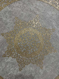 ست رومیزی گرد مخمل زرکوب ترک 3 تکه رنگ طوسی طلایی
