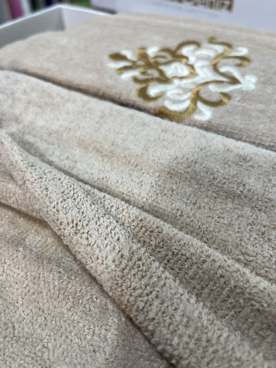 این حوله از پارچه باکیفیت و ممتاز و گرم و وزن بالا تولید شده که بافت آن متراکم، نرم و یکدست است؛ جنسی که از همان لمس اول، تفاوتش را احساس میکنی 🤍