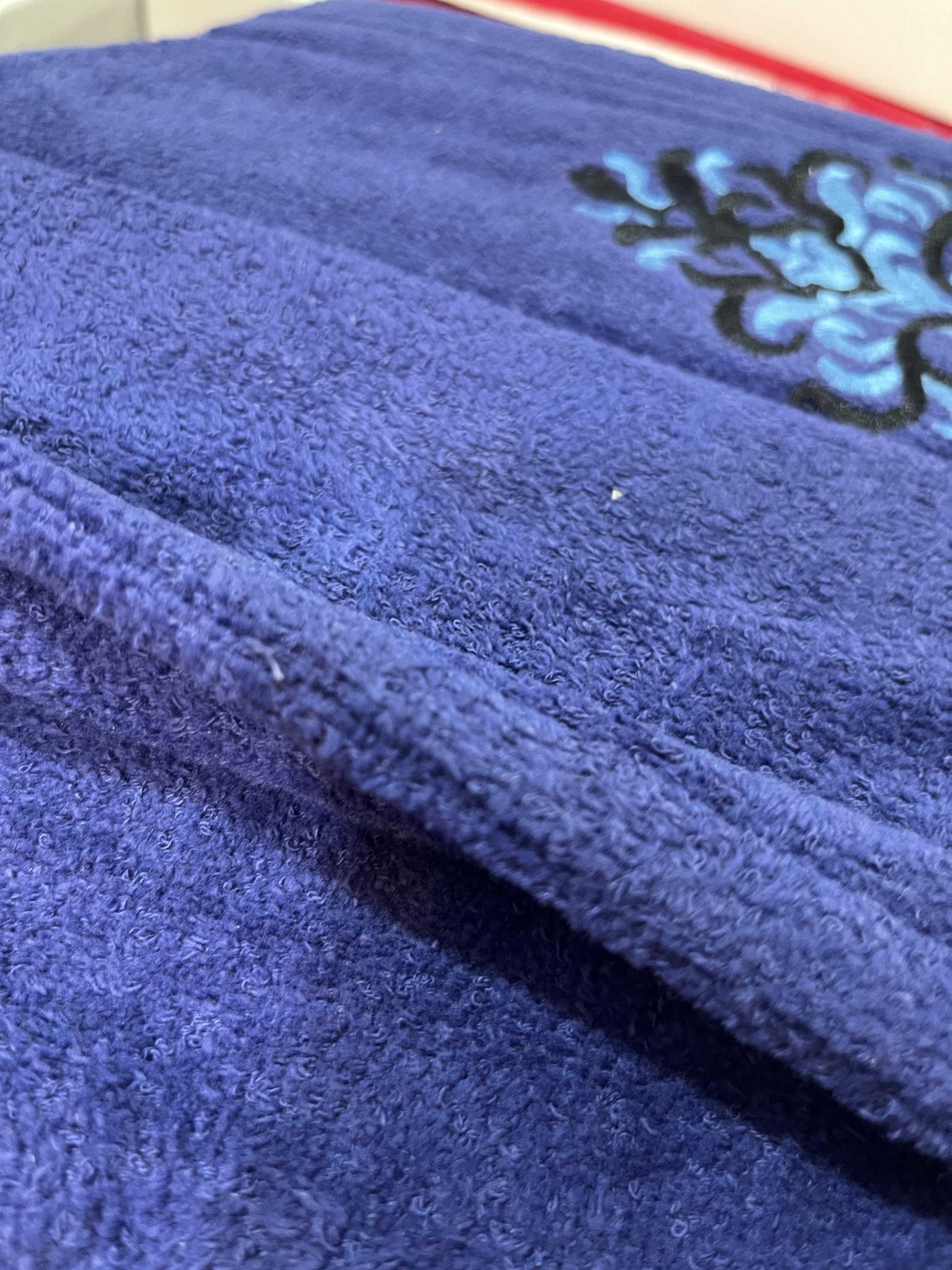 این حوله از پارچه باکیفیت و ممتاز و گرم و وزن بالا تولید شده که بافت آن متراکم، نرم و یکدست است؛ جنسی که از همان لمس اول، تفاوتش را احساس میکنی 🤍