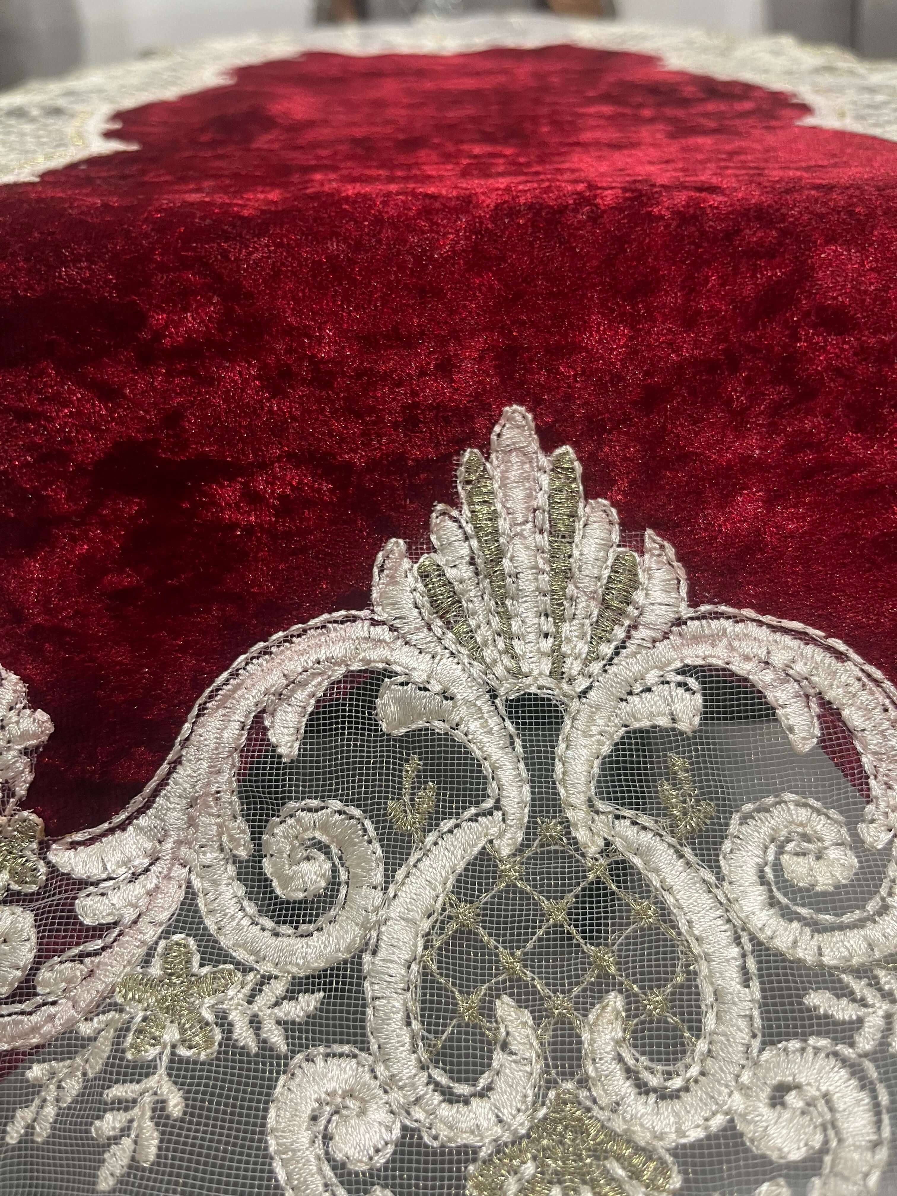 ✨ مخمل نرم و گیپور دقیق، جلوهای مدرن و لوکس به میز میبخشد