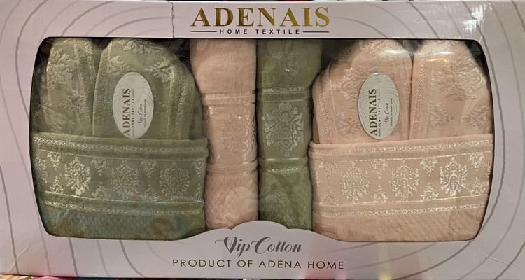 حوله تنپوش سرویس حمام دوقلو Adenais همون کیفیت بالای مدل قبلی رو داره، با این تفاوت که داخلش دو عدد حوله تنپوش مجزا قرار گرفته؛ یکی مناسب آقا 👔 و یکی مناسب خانم 👗