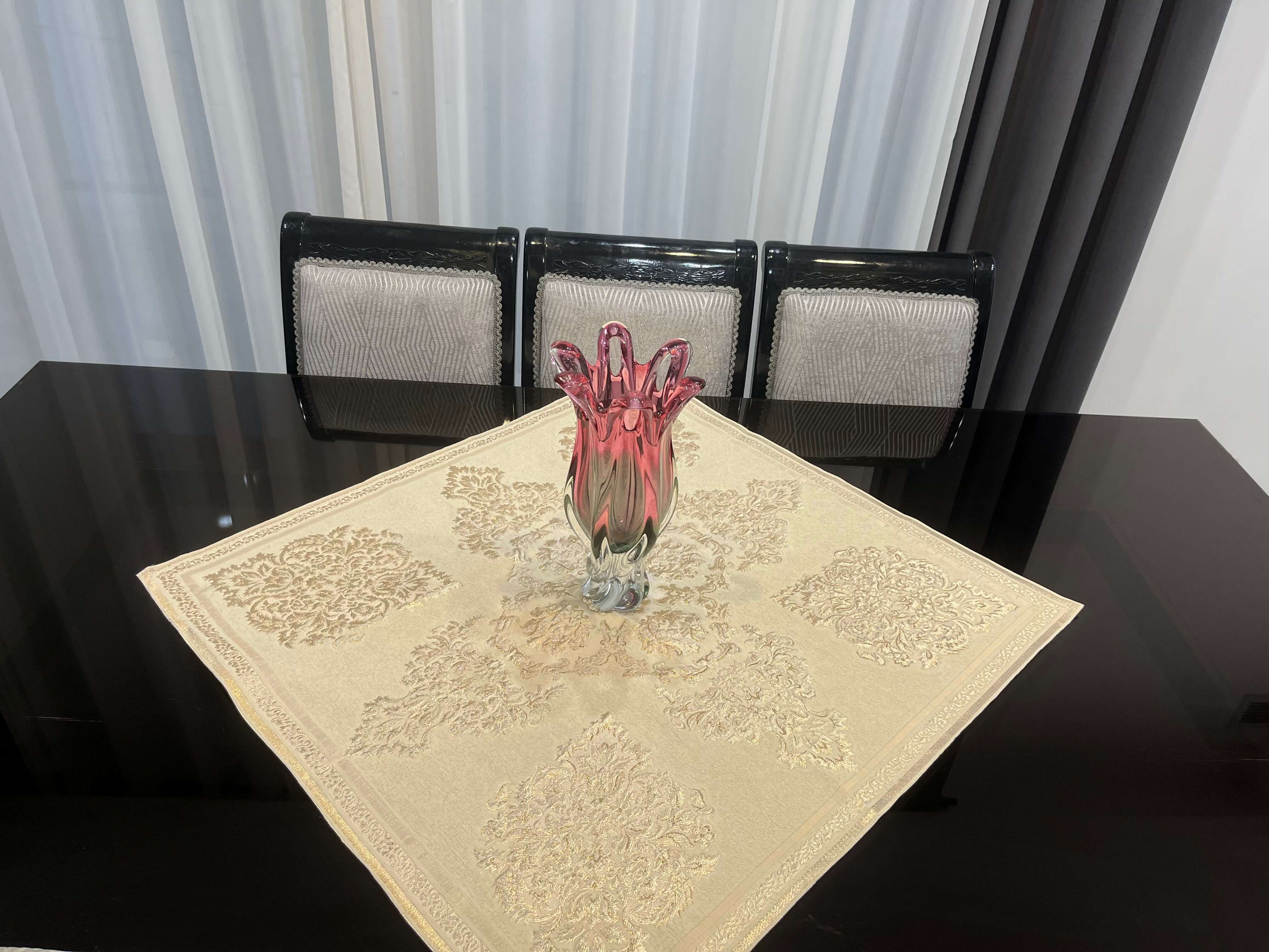 این رومیزی انتخابی عالی برای مهمانیهای رسمی، دورهمیهای خانوادگی و حتی بهعنوان هدیهای ارزشمند 🎁 است. جلوهی طلایی روی پارچه مخمل باعث میشود میز شما همیشه در مرکز توجه باشد و حس زیبایی و شکوه را به فضای خانه بیاورد.