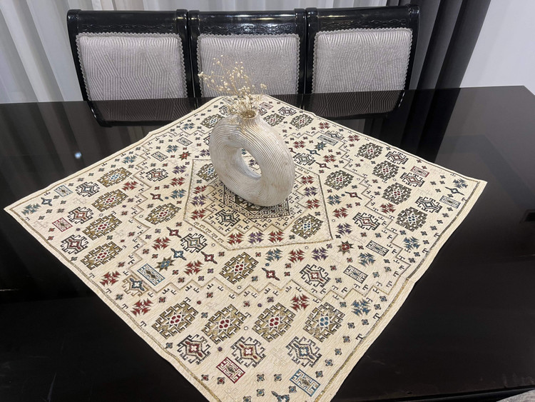 🌿 رومیزی مربع جاجیمی سنتی رنگ کرم؛ ترکیبی از اصالت، زیبایی و سادگی ایرانی!