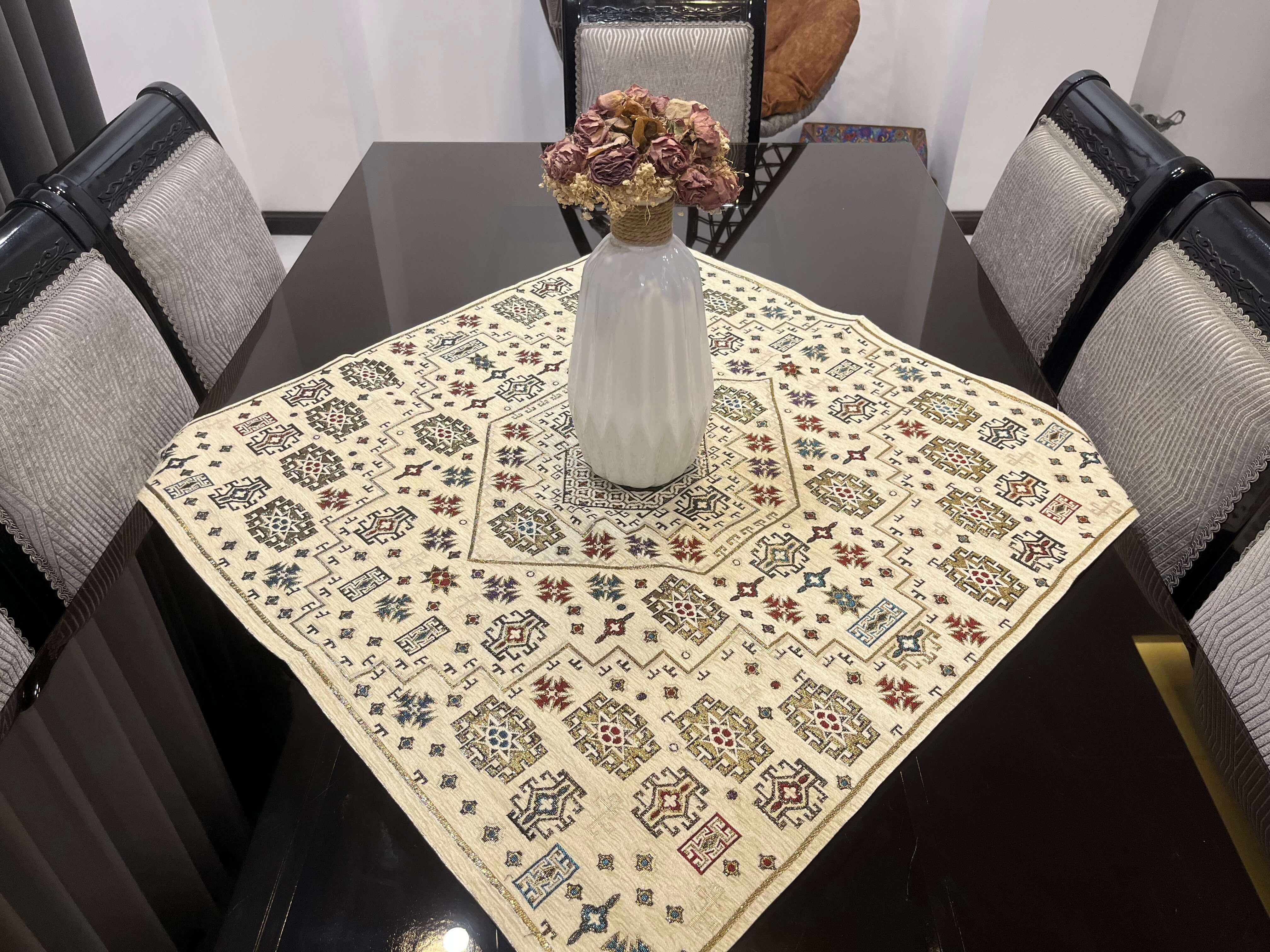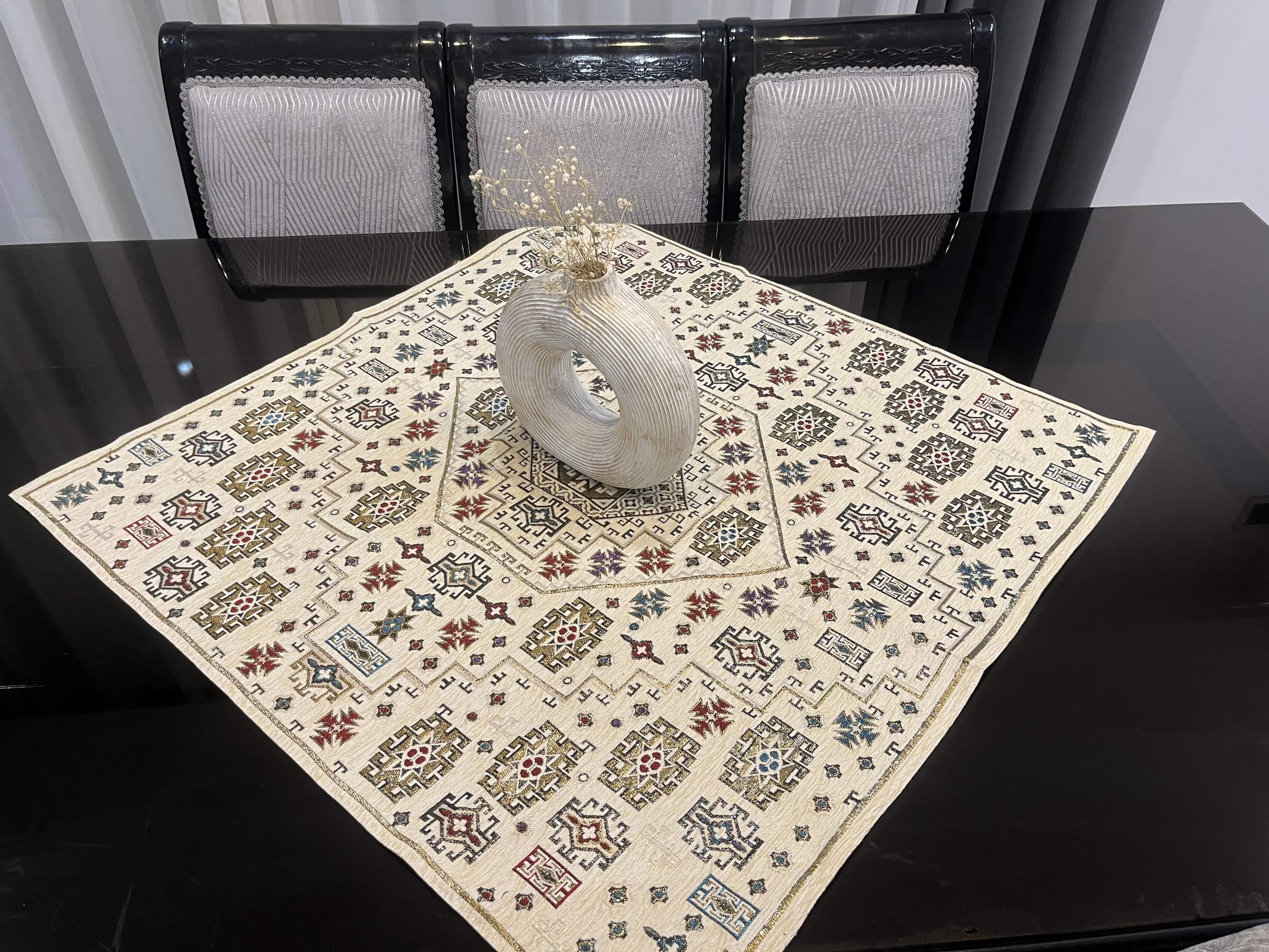 رومیزی مربع جاجیمی سنتی رنگ کرم