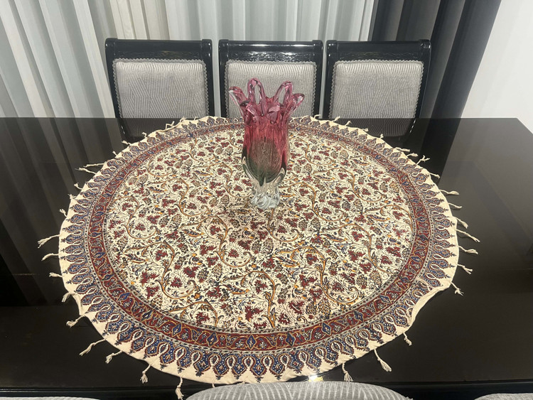 با رومیزی گرد قلمکار اصفهان، خانهتان را با نقشهای اصیل ایرانی زیبا کنید 🎨. هر طرح با دستان هنرمندان اصفهانی خلق شده و حس واقعی هنر ایرانی را به میز شما میآورد. این رومیزی نه تنها زیبایی میز شما را چند برابر میکند، بلکه حس گرمی و صمیمیت به محیط میبخشد 💖.