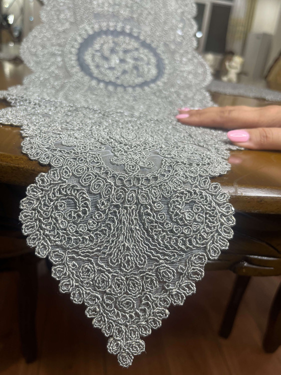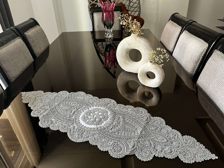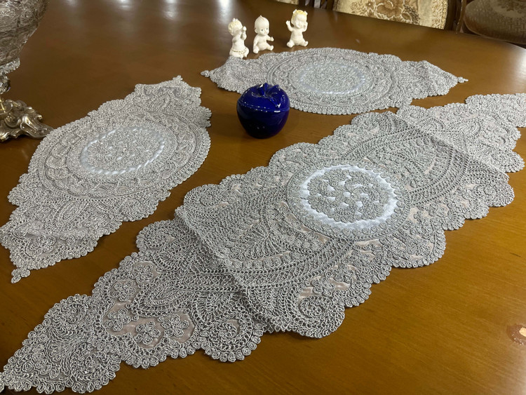 رومیزی ترک گیپور 3 تکه رنگ طوسی