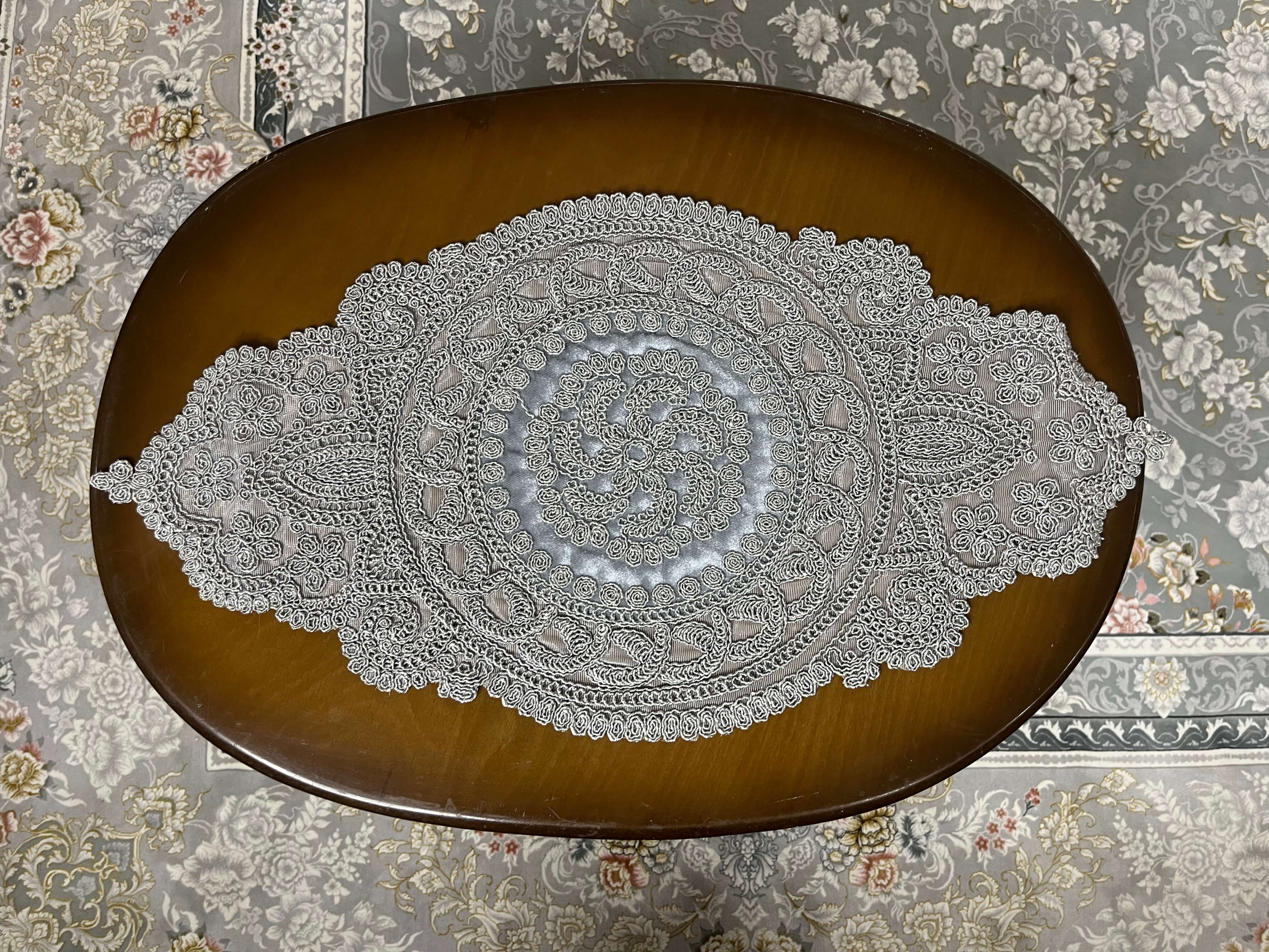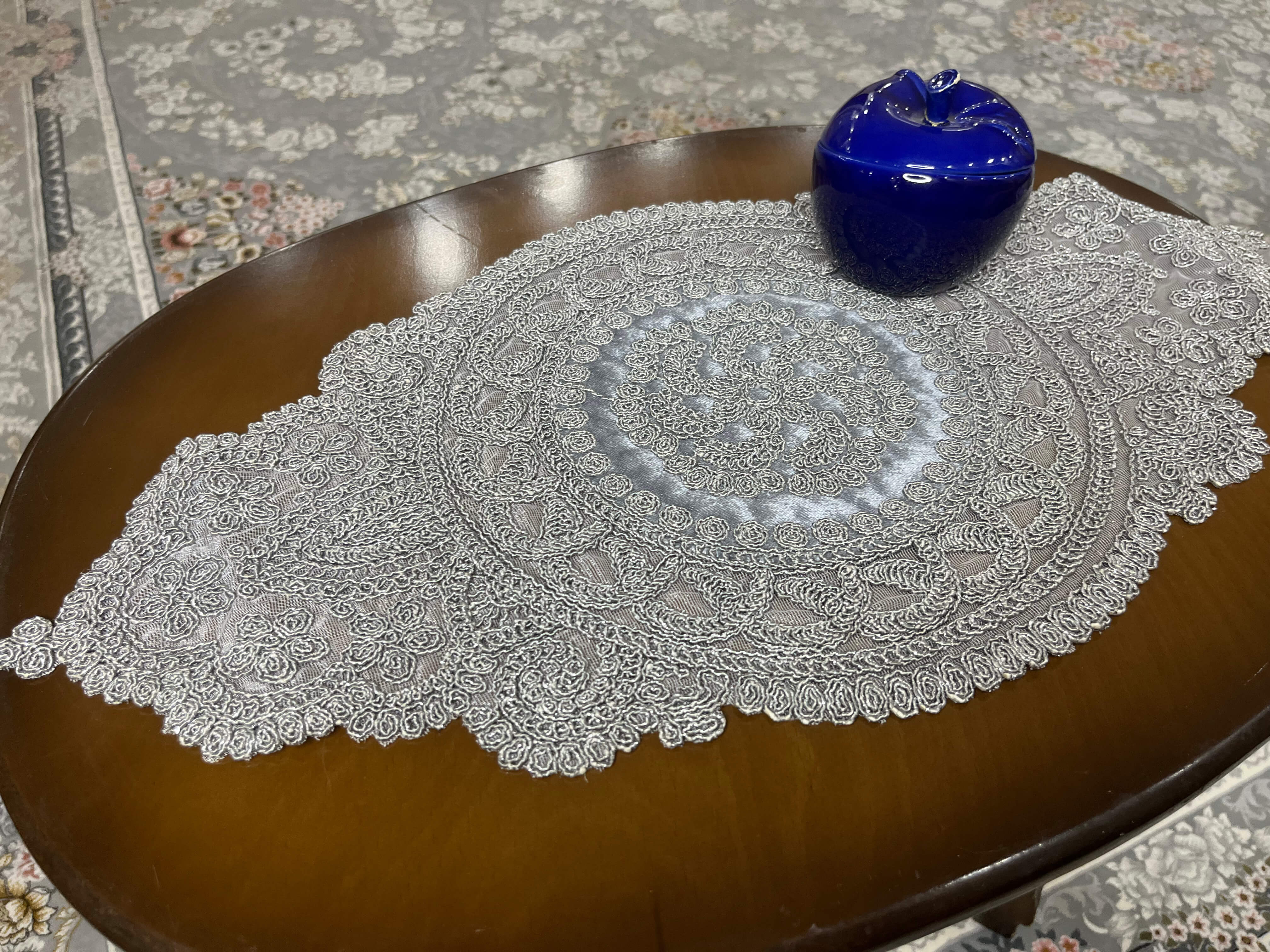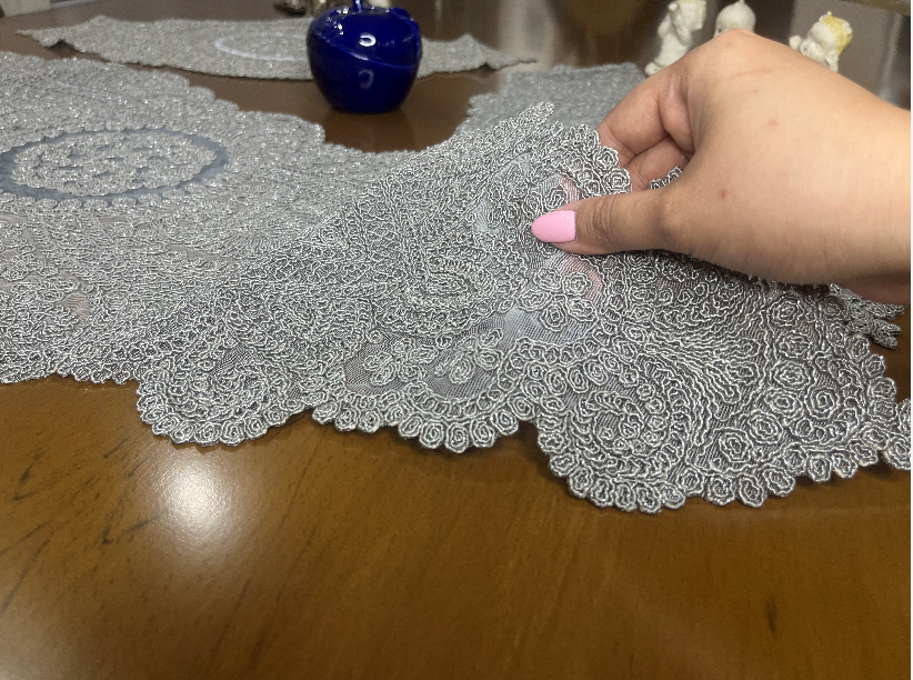 رومیزی ترک گیپور 3 تکه رنگ طوسی