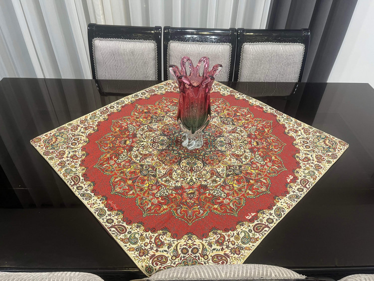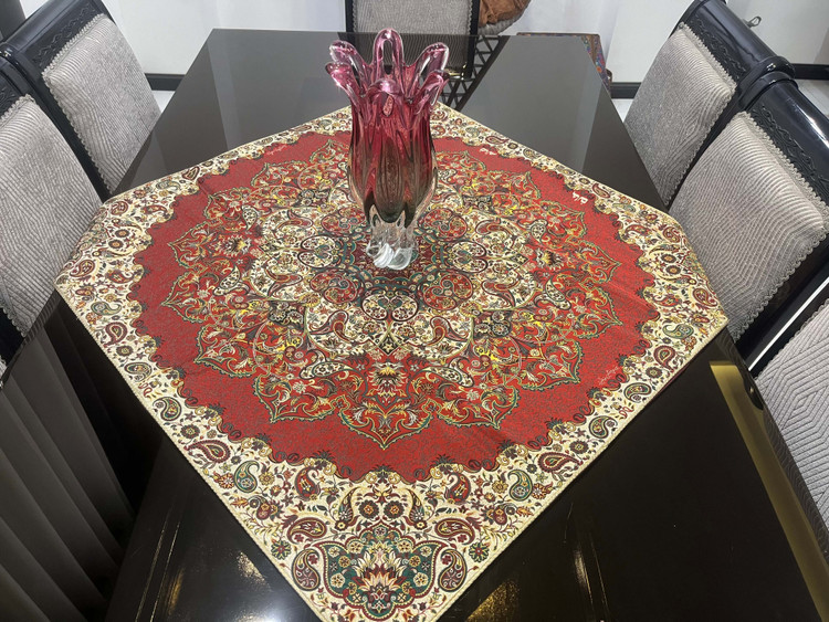 با رومیزی ترمه رنگینکمان ، جلوهای خاص و اصیل به میز خود ببخشید 🎨.