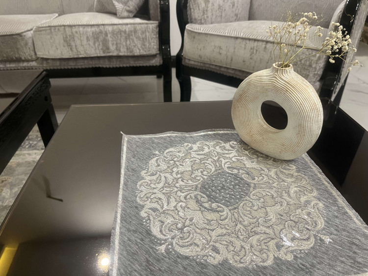 با رومیزی عسلی مخمل نقره کوب، میز شما جلوهای شیک و لوکس پیدا میکند ✨. پارچه مخمل با کیفیت بالا و رنگ طوسی، حس گرمی و آرامش را به فضای خانه میآورد 💛. این رومیزی هم برای استفاده روزمره مقاوم است و هم برای مهمانیها جلوهای فوقالعاده ایجاد میکند.