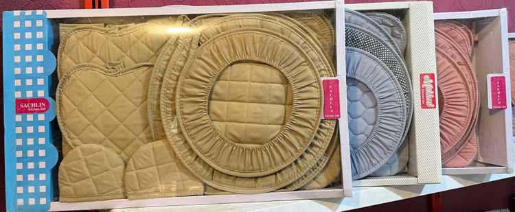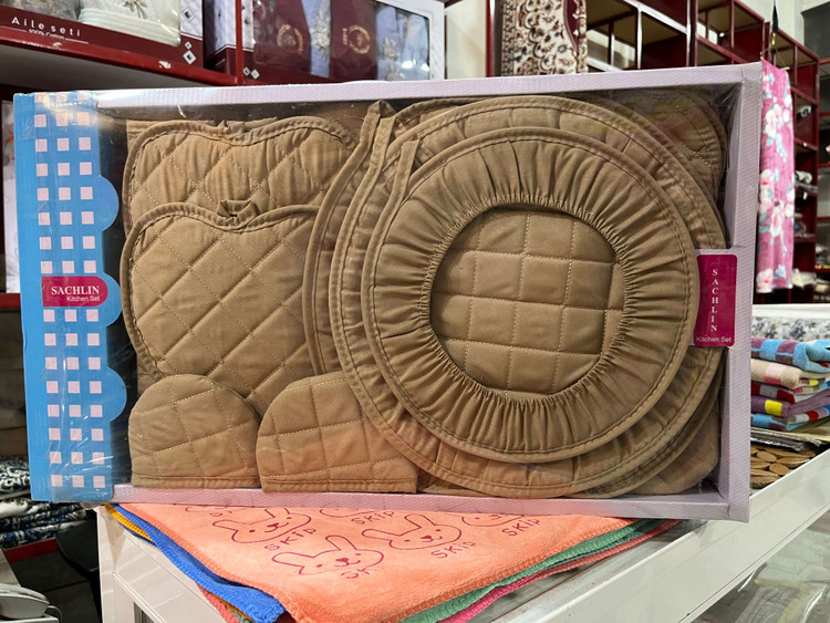 دمکنی 3تکه، 1 جفت دستگیره، 1 جفت دستکش فر، ظرف خشک کن، پیشبند، دستگیره قابلمه